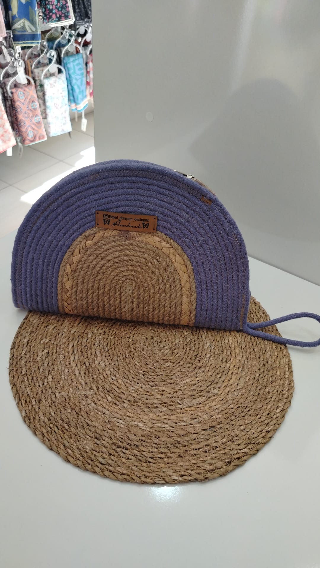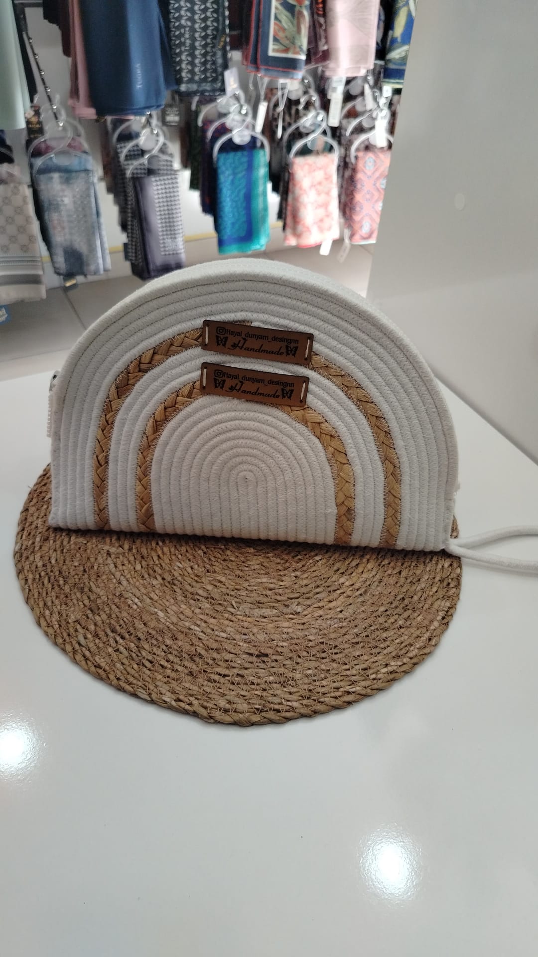 Zarif ve otantik bir tasarıma sahip bu el yapımı ipli clutch çantalar, el emeğinin sıcaklığını ve doğallığını modern bir şıklıkla birleştiriyor. Beyaz iplerin yumuşak dokusu, aralara serpiştirilmiş ince hasır görünümlü iplerle harmanlanarak çantaya benzersiz bir doku ve derinlik katıyor. Her iki çantanın üzerinde yer alan "Hayal Dünyam Design" ve "Handmade" etiketleri, ürünlerin özgünlüğünü ve el yapımı değerini vurguluyor. Mor, yeşil ve krem renk seçenekleriyle her tarza ve her duruma uyum sağlayan bu clutchlar, özellikle gece davetleri, özel günler veya elbiselerinize zarif bir dokunuş katmak için idealdir.